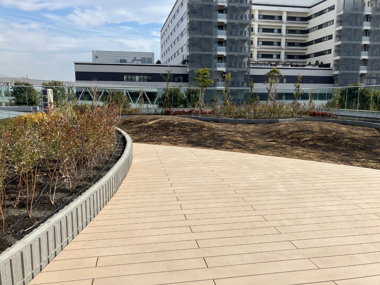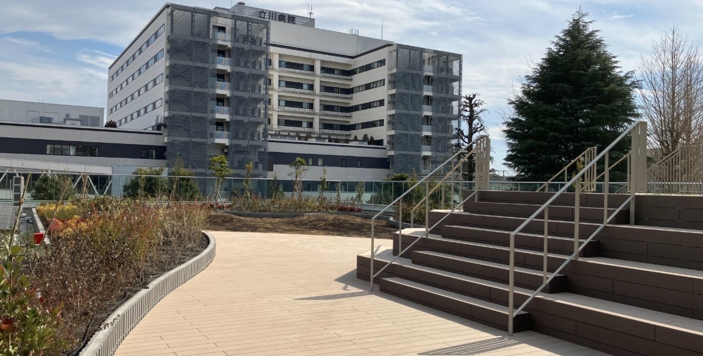 Works 某福祉施設 草花・樹木 二重床 新築 庭園型 教育文化施設 保護コンクリート 施工時期 2025年2月 所在地 東京都立川市 施工面積 578㎡ 仕様 FD-LP、FDウッド、FDパネル、ガーデングラス 樹木・菜園仕様FD-LP ウッドデッキFDウッド 人工芝ガーデングラス